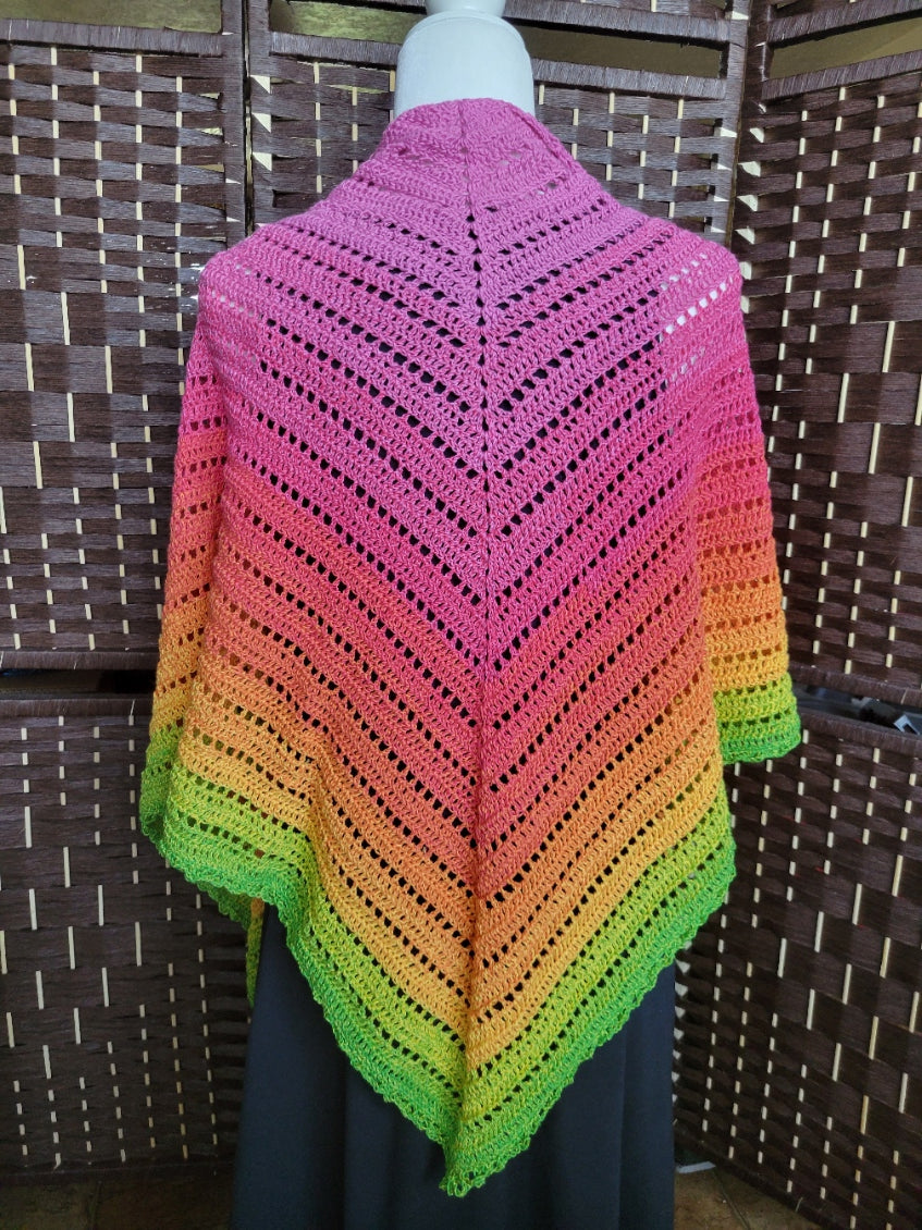 Let's call this one "Rainbow Sherbet!" This stunning handmade wrap is incredibly versatile and can be styled in countless ways. Elevate any outfit with a vibrant, colorful layer or add a touch of elegance to your swimwear. Embrace this fashion essential and turn heads wherever you go!